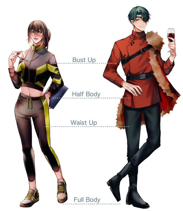- Full CG Omakase จะมีขนาดตัวละครตั้งแต่ Waist-up ถึง Full Body และฉากที่มีรายละเอียด ขึ้นอยู่กับรายละเอียดตัวละครที่ผู้วาดจะพิจารณาตามความเหมาะสม (สามารถแปะเรฟ มู้ดบอร์ดที่ทำให้เข้าใจตัวละครได้)